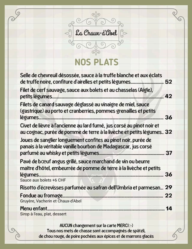 Yes, Restaurant la Chaux-d'Abel is offering 20% off the 'a la carte' menu Reserve your table and enjoy your special discount now on TheFork!