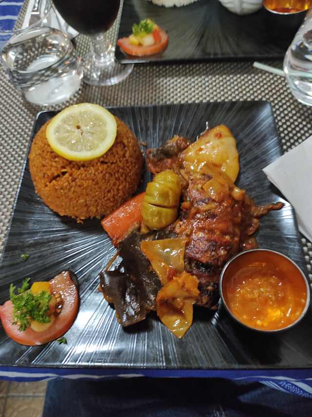 - Poisson braisé avec allocos et deux accompagnements au choix.