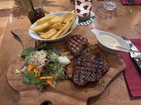 10/10Very friendly and welcoming owner, knows what to recommend. Our steaks were perfect medium rare
