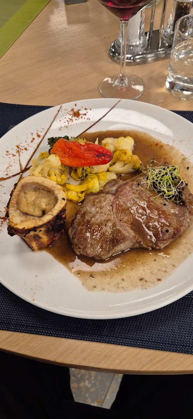 - Entrecôte de bœuf suisse poêle au romarin, os à moelle, sauce bordelaise