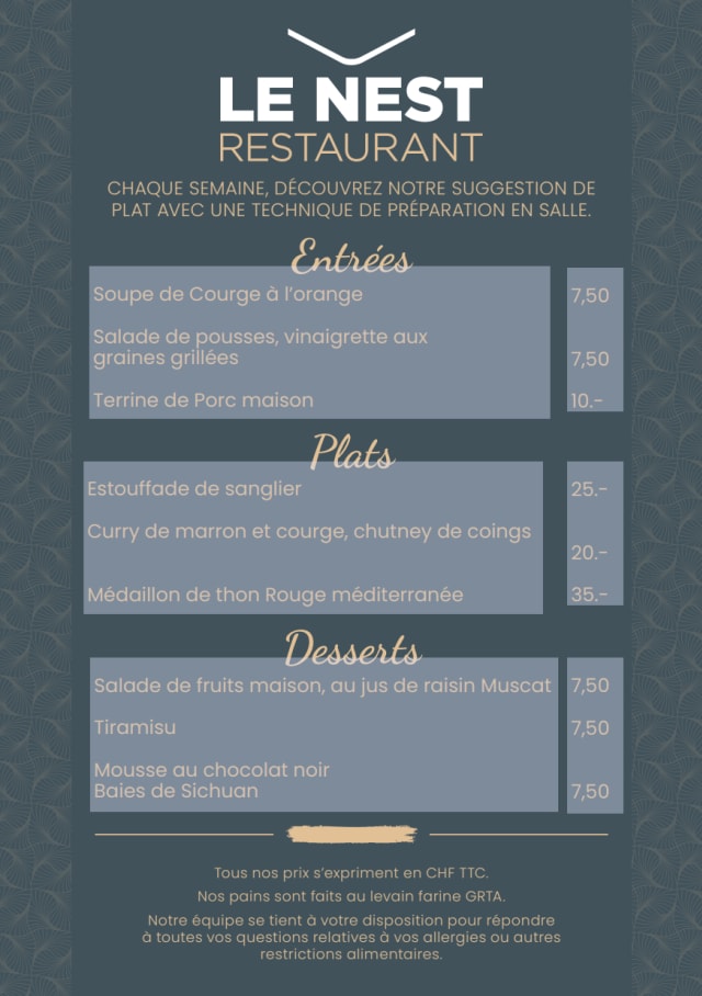 SwissGame meatSeafood platterCheap eatsGluten freeLactose intoleranceVegetarian dishesAmerican ExpressWifi