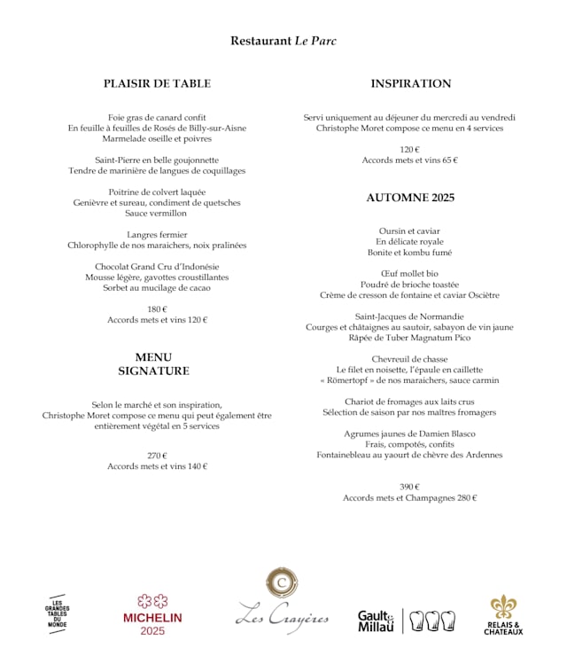 10/10The food, the bar, the service, and the ambiance—everything was excellent. It’s an affordable restaurant with outstanding quality. We truly loved our experience! Thank you, Les Crayères, for everything.
