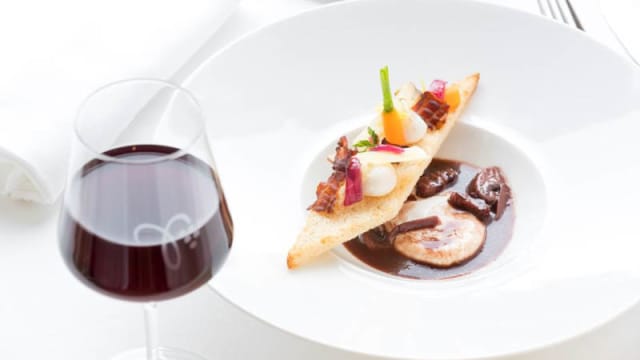 3.5/10Really disappointing for ~50€ menu: - Super long waiting times. 30' to order. 45' between the end of the starter and the main course. - Got the impression that 3 out of 4 of the main dishes were "reheated". The food seemed good quality, but two dish fishes where super dry, and the meat felt like chewing gum. - Very limited light in the garden, impossible to see the dishes with the lights on the tables.