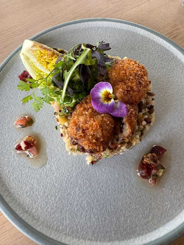 - Filet de cannette cuit à l’unilatéral - cannellonis de panais et noisette - cromesquis de cuisse - jus corsé fini au vin jaune - sorbet panais/tonka