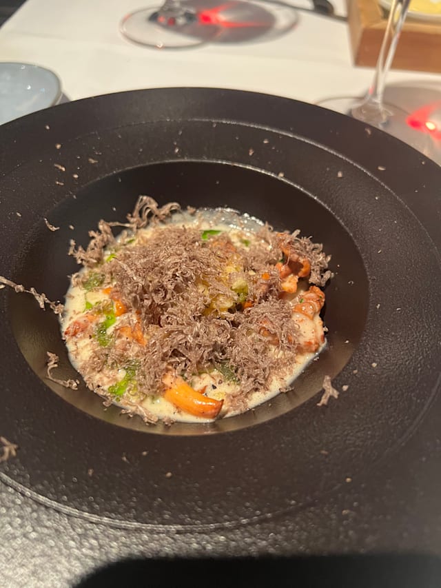 7.5/10Modern cuisine with nice wine pairings. Service was slow (>1 hour) in between courses and one of our servers seemed to have a problem explaining the dish in English.