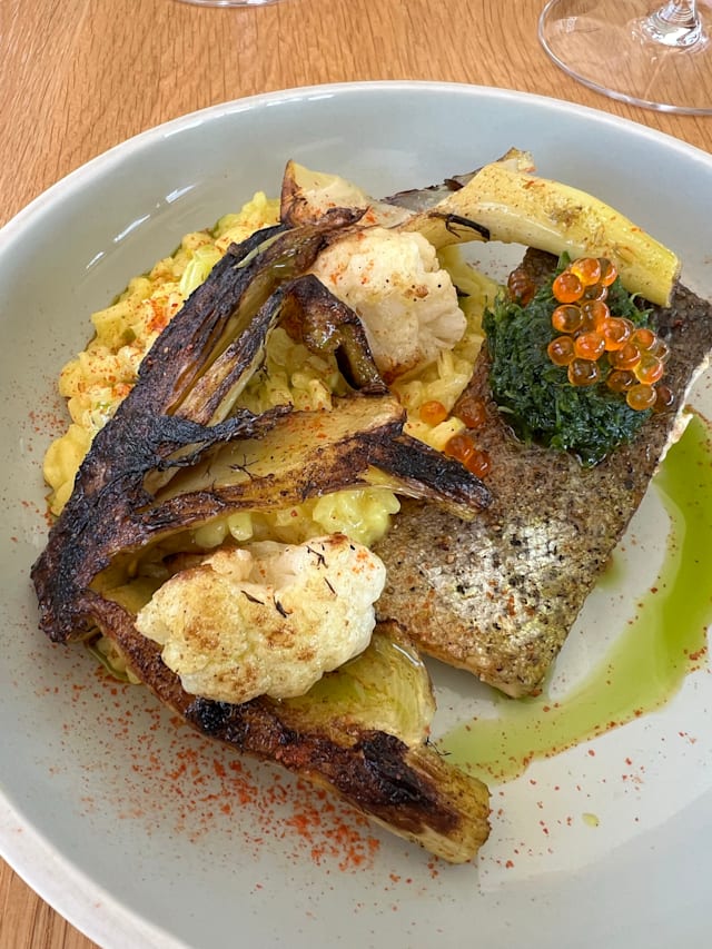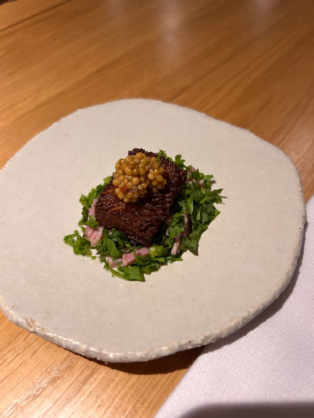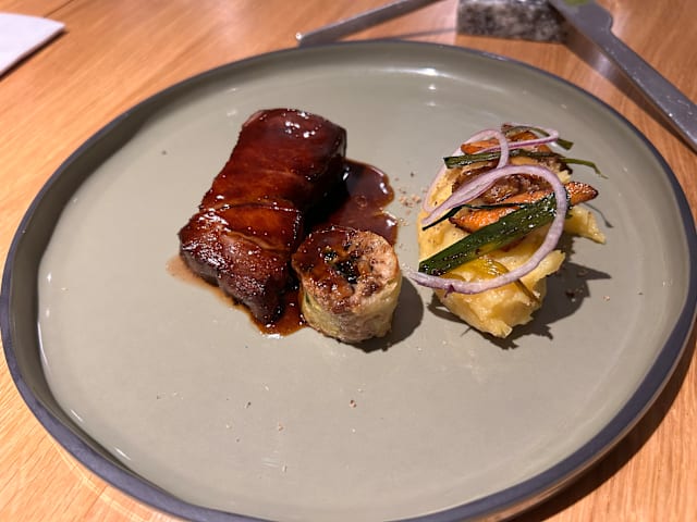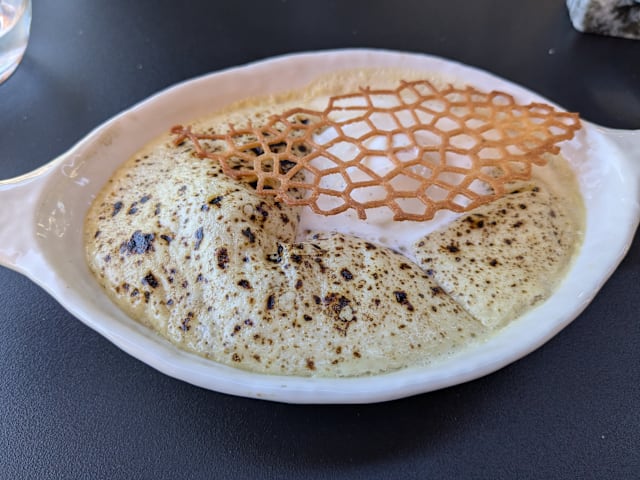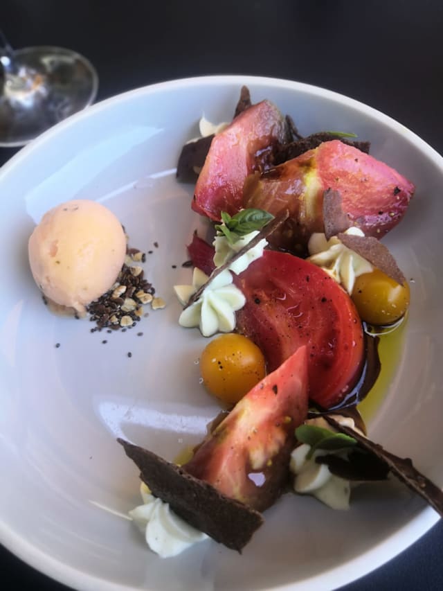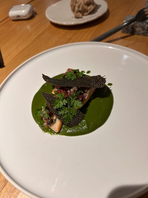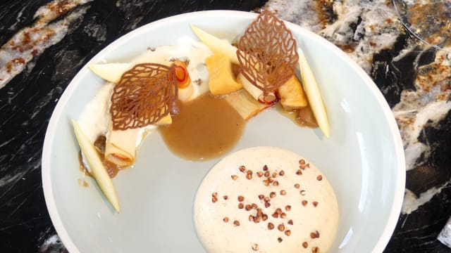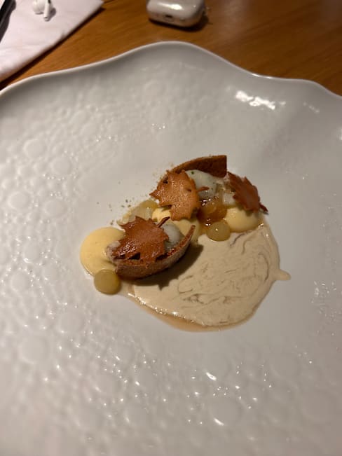 6.5/10+1Good approach, but the taste of some combinations are not well mastered. The red cabbage mousse is not a succès, the taste is too raw. The dessert was really tasty and harmonious in the choice of ingredients.