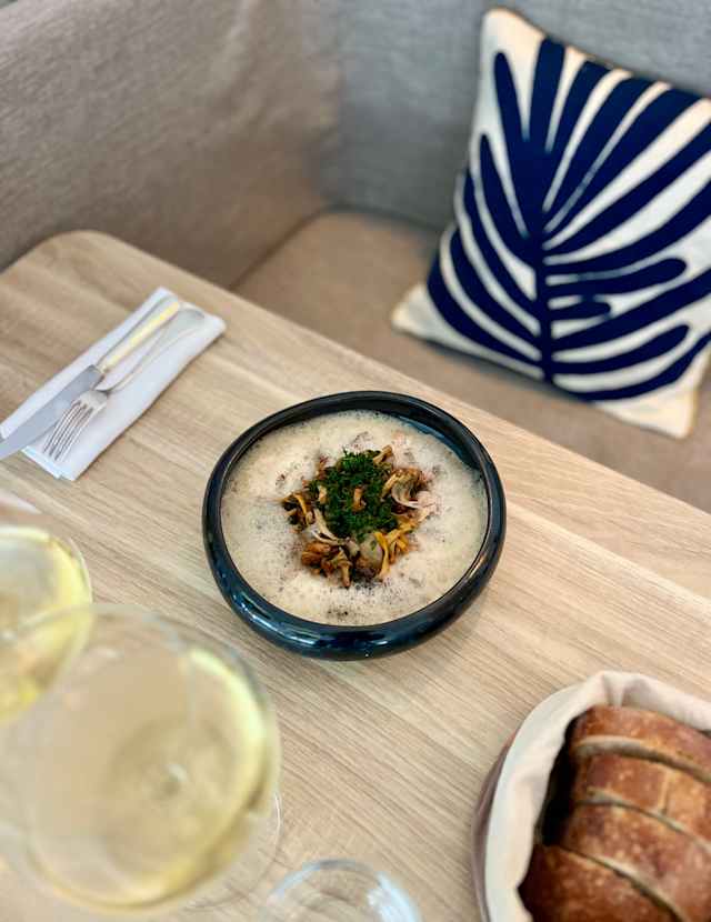- Suprême de volaille fermière, poché grillé, menthe, basilic et coriandre