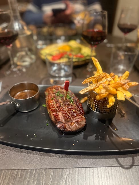 9/10A true meat restaurant. The restaurant serves ample portions and yummy sauces to complement the thing they do best- Meat. Planning to return to try the swordfish. Waitress was amiable. .Desserts = excellent with nice presentations. I highly recommend this spot- in the Cannes's old town(the suquet). We live in Cannes and had never visited but will make it a regular hang out. - atmosphere. straight forward, simple and superb for MEAT!