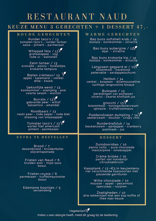 9/10I am a fan! Every time we are in Groningen, we go for dinner at Naud! Love the concept of 3 course menu. The food is excellent and so is the service!