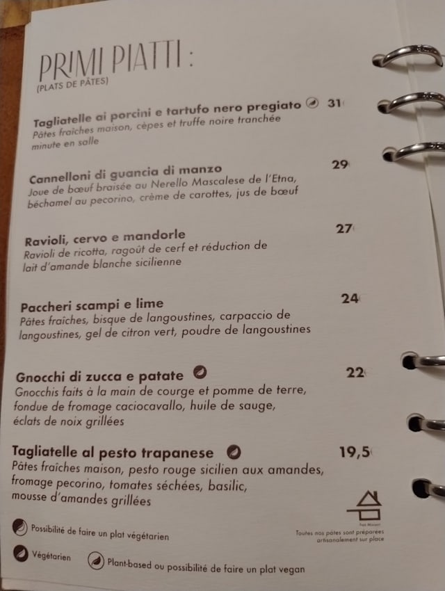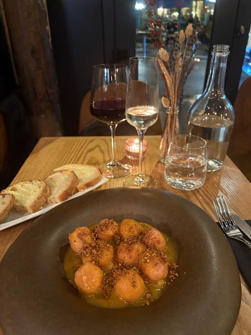 9/10I went in with high expectations, having seen a menu online with many pasta alternatives that can be made plant-based. Sadly, in the end only gnocchi was possible - it was lovely but not what I hoped to be able to choose (their menu in the restaurant also mentions a plant-based option for a fresh pasta dish - even though it contains egg - so best to always ask). No vegan dessert options, either, but they did comp the espresso. So all in all a lovely experience as a solo diner, but disappointing from a vegan perspective.
