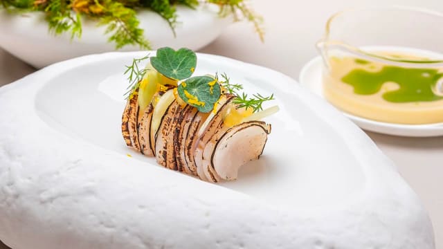 Explore the chef's selection menus with diverse dishes at fixed prices. Some are bookable via TheFork, while others are available onsite.