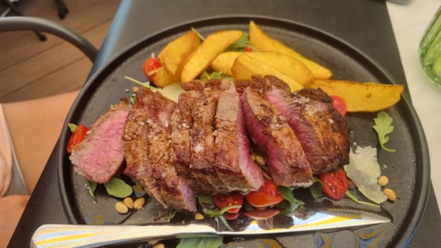 - Ribeye steak “simmental” vom grill mit spargeln, tomaten und kartoffeln