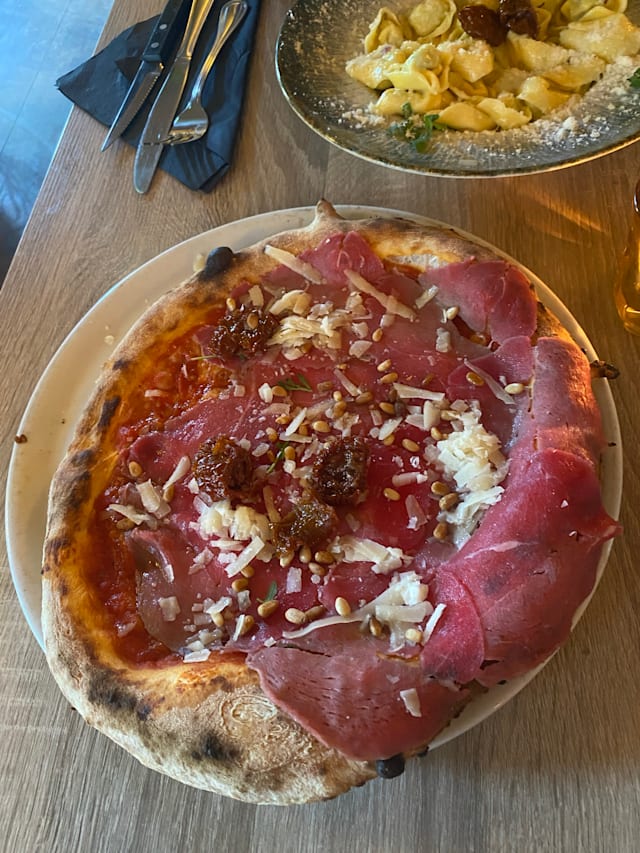 3/10Diner at the Italian for 2. We made a reservation thinking it would be a Italian restaurant in a nice building with nice terras. Once arriving you pass some coffeeshops. When sitting outside we smell once and a while people smoking marihuana. Not something you prefer when you go for dining. The menu was limited. Most pasta’s are with cream. After coming back from Italy two weeks ago and comparing the pasta with there where they use nice fresh herbs instead of cream it was disappointing. We wanted to have a glas of wine. The option is the house wine or you need to buy a full bottle. No options by the glass. The staff is very friendly, but seemed very busy as lack of staff. We waited 1.5 hour for our main-course. Won’t come back.