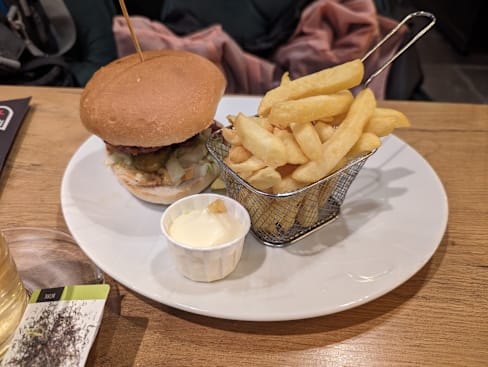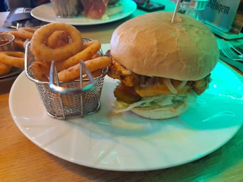 9/10Best chicken burger I ever had. The decision of the restaurant to put filleted chicken on the burger instead of one of those super processed patties was definitely the right one.