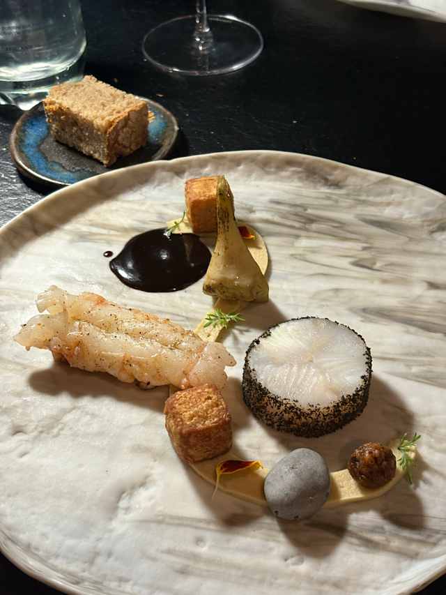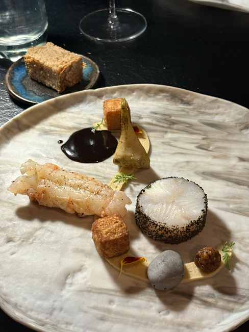 6.5/10It took over 3 hours to get through 7 courses, service was very slow, even ran out of wine on course 4. Dessert was beetroot and lentils, lots of sweet potato, signature dish was actually not very good at all, only the langoustine had any flavour. Lots of blow-torching (3 or 4 out of 7 were torched) and not enough cooking, leeks were raw and very chewy. Post dessert treat was a whiskey pebble was the best thing of the night.