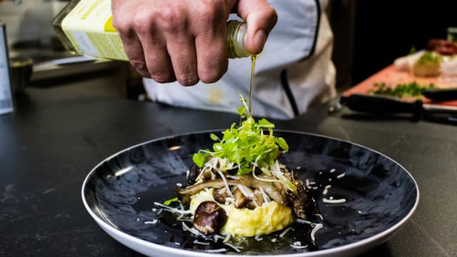 Er is een open keuken met verrassende elementen. De koks koken op natuursteen en maken live voor u zowel bij ontbijt, lunch als diner uw gerechtjes klaar. De beefcraft zorgt voo...