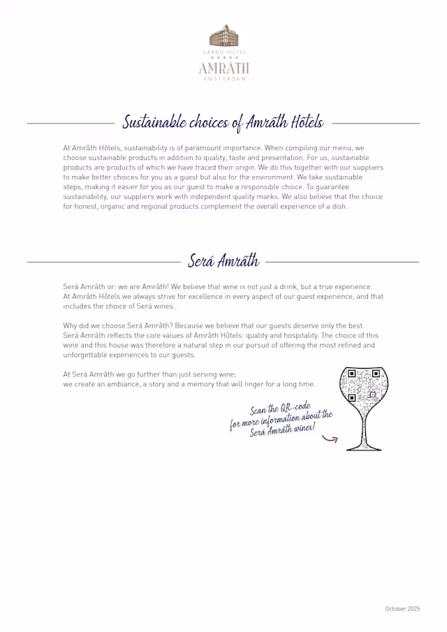 Restaurant Seven Seas - Grand Hotel Amrâth AmsterdamDear Sophie, Thank you very much for your kind review. We are delighted to hear that you enjoyed the atmosphere of our restaurant, the food, and the service provided by our team. Your positive feedback is greatly appreciated, and we hope to have the pleasure of welcoming you back for another enjoyable experience soon. Kind regards, Team Grand Hotel Amrâth Amsterdam