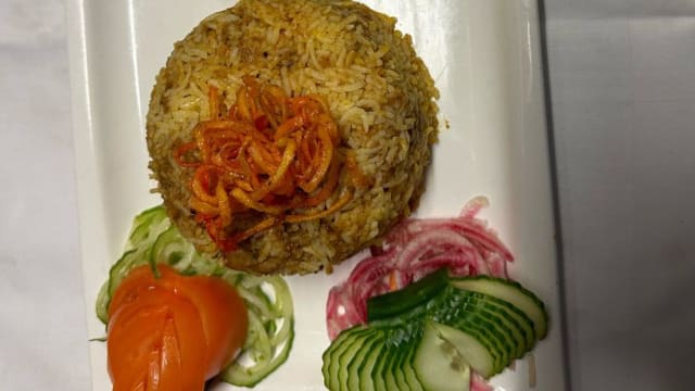 Rice cooked with lamb blended in a variety of spices mixed with a curry sauce