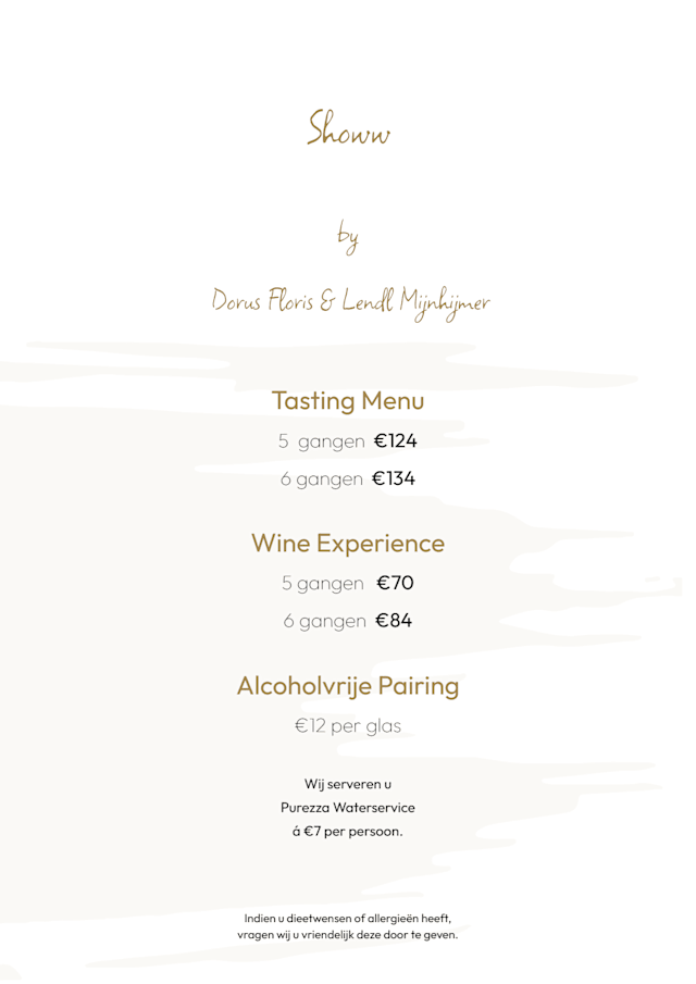 10/10+3This was a very special treat for my family when we visited Amsterdam. The service was amazing. The staff was friendly and funny. The food was worth every penny. We had the 6-course tasting menu and it exceeded our expectations. I would highly recommend Restaurant Showw!