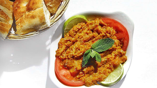 - Concassé d’aubergine, oignons frits avec du lait caillé et la menthe