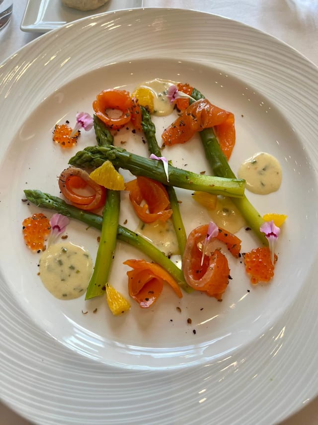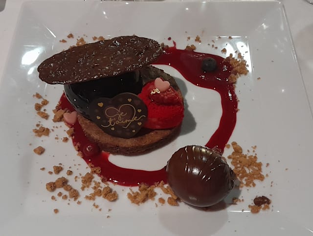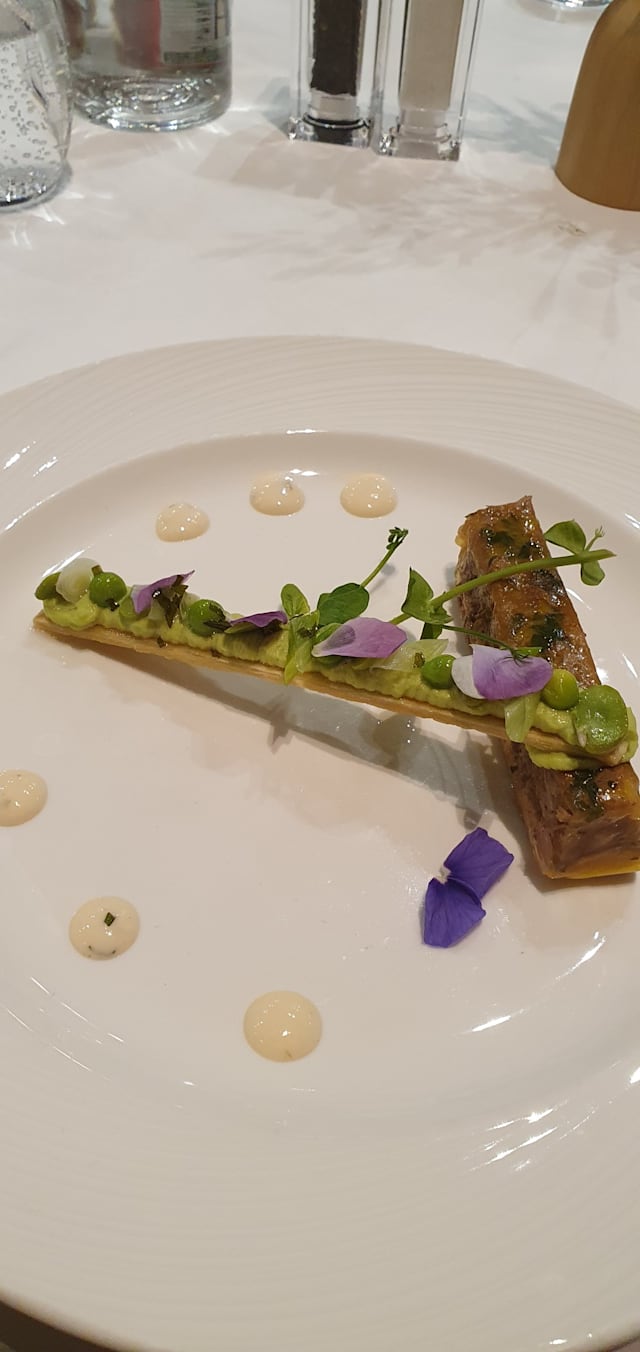 Pigeon des costières de Mr Baeza en deux façons : Le suprême rôti à l’os, épeautre de Provence aux petits pois et jus au lard paysan ; Cuisse et abatis comme une pastilla, saladine de carottes à l’orientale