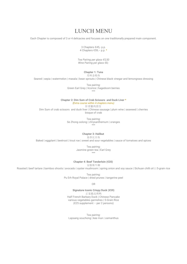 10/10This restaurant was a such great find! We went to celebrate our son moving to The Hague for work and we couldn't have found a more suitable place. The overall experience was exceptional from beginning to end. The staff were very welcoming and the service superb. We loved our 5 chapter dining experience and the crispy duck was divine. We would highly recommend Zheng to our friends and look forward to eating there again the next time we are in The Hague.