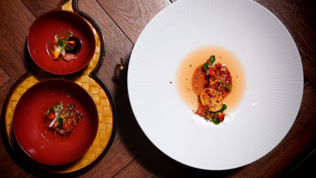 Explore the chef's selection menus with diverse dishes at fixed prices. Some are bookable via TheFork, while others are available onsite.
