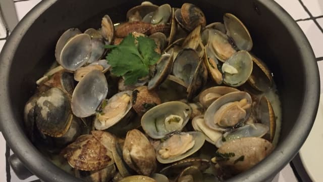 Cataplana de polvo com batata doce ameijoa e camarão 2 pax
