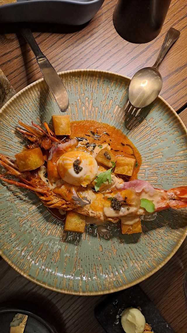 - Spanish Eggs, Tiger Prawn, Oscietra Caviar & Guanciale