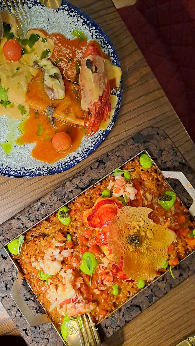 - Blue Lobster Paella, Oscietra Caviar, Coriander & LIme Aioli, "Torta de Cádiz" (for 2 people)