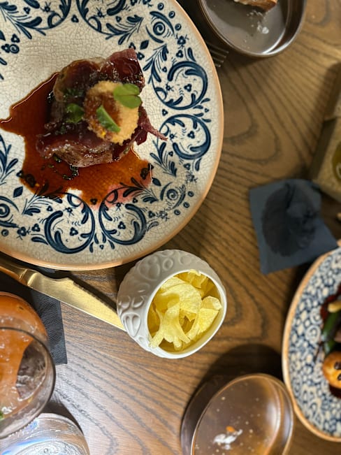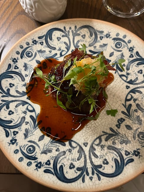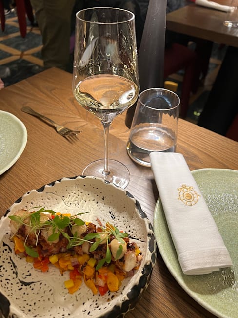 8.5/10From the street, it appears this restaurant is going to be a great experience. The staff was friendly and welcoming as we were seated. The drink menu was interesting and we had some good cocktails. Bartender makes a good drink. The menu is, unfortunately a bit sparse. We like to share appetizers and the restaurant really had some interesting, unusual, very individual first courses. We didn’t see anything we could enjoy sharing. The bread, which cost five euros, Taste good. The entrées are a bit confiding. There needs to be more choices. The risotto is made correctly, the fish is cooked well. They could increase the size of the protein on the portions. We started to feel that the staff was busy with other tables, in the middle and end of the meal. It was almost 5 stars.