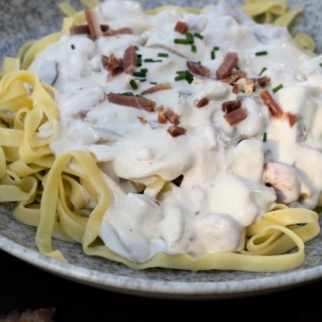 Con la salsa del jugo de la carne y patatas fritas, delicioso ....