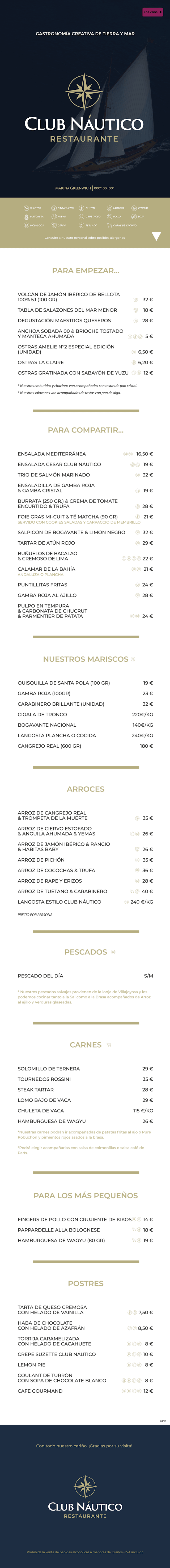 Disfruta de la mejor experiencia gastronómica junto al mar con nuestros menús diarios, elaborados con una selección diaria de productos frescos y de proximidad. Vivimos en una zona privilegiada que nos permite cocinar con una excelente materia prima de proximidad, con especial énfasis en el pescado...