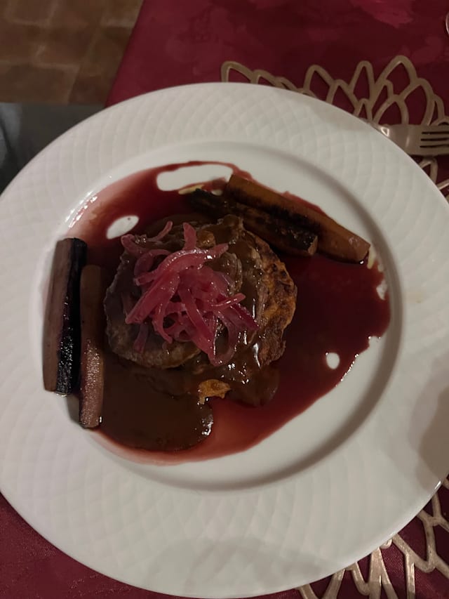 10/10A most unusual place to eat but quite an experience being a very old convent of some 500 years old Food choice not extensive but catering for all and great to have vegetarian options among meat and fish dishes Food was of an exceptionally high standard and innovative in blends of flavour The only observation which perhaps the nice owners may wish to consider is the external roadside signage which could be enhanced particularly at night Thank you for welcoming us and for the attentive service of the maitre d’ Jonathan and Rachel Williams