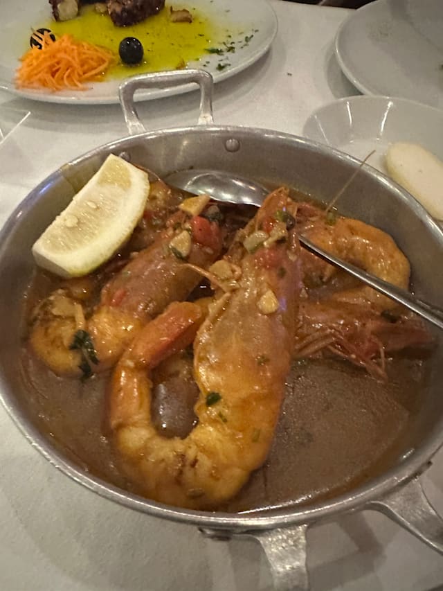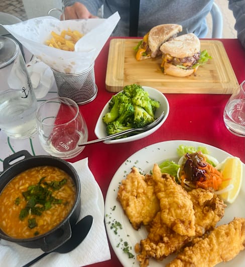 8.5/10We were a group of 3 and shared the couvert and a portion of clams à Bulhão Pato. The clams were very good. Then we had a grilled piece of grouper, grilled tuna steak and octopus at Lagareiro style. It was VERY weird that the dish of octopus didn’t include any side dish in the price; it’s a way of having a lower price in the list, but then it is a fake price (it is cleared stated that it does not include any side dish, but that is not common practice in Portugal). The sautéed greens of my grouper weren’t fresh at all and they didn’t taste good… The side dishes of the tuna were too salty. Other than that it was OK. For dessert we shared an apple pie with ice cream, which was very good; too sweet for my taste, but in Portugal the desserts are generally very (and too!) sweet! There was a big group there during our lunch, so the restaurant was very noisy the whole time. The staff was friendly and attentive.