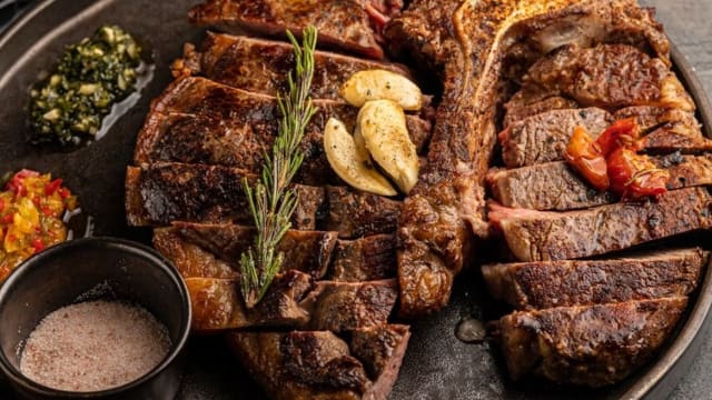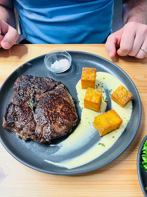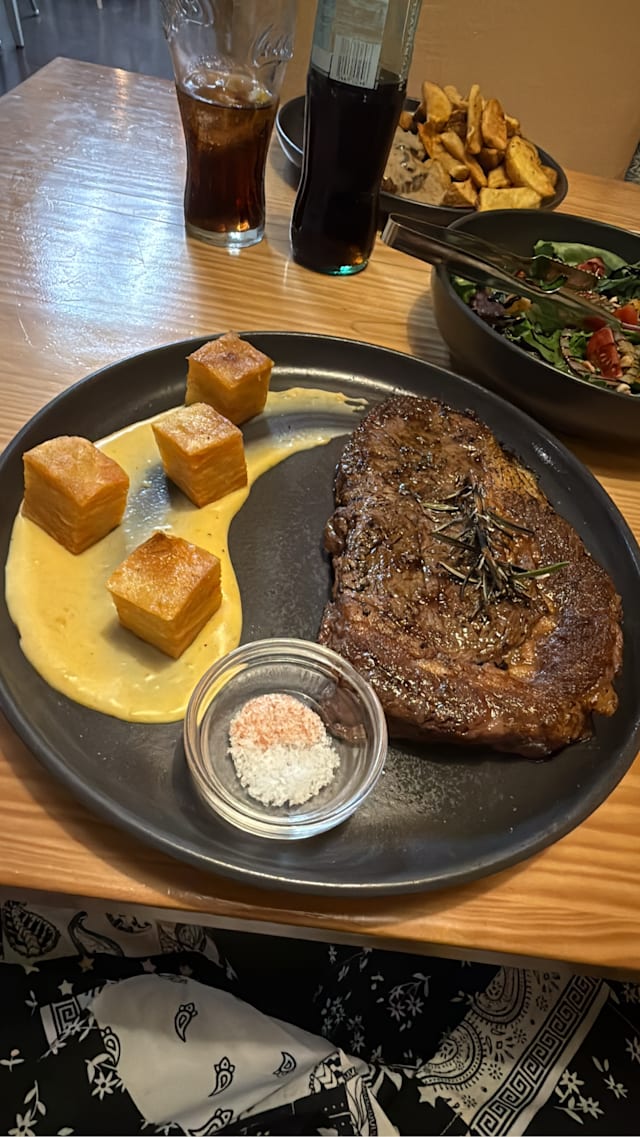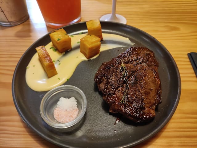 10/10What a great experience from the time we walked in until we departed. Very attentive staff, excellent cold cider, dry aged ribeye steaks cooked to perfection with excellent sides and homemade deserts. The owner, Tiago, took time to explain the various cuts and preparation of the various dishes, They also had an English language menu and they spoke English as well. Do not pass this place if you desire one of the best steaks in and around Tomar.