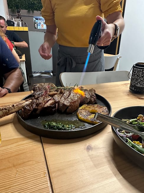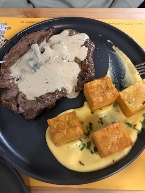 8/10Nice small restaurant with great meat options and homemade ice teas! I asked for medium rare on my rib eye, but it came a little bit too raw, same for my partner's. But it was taken care of by putting it back on the grill. Flavors are good and balanced, loved the potato puree with truffle and pink pepper, I definitely recommend this one! The millefeuille potatoes also very well done! Thank you, I hope to come back some time!