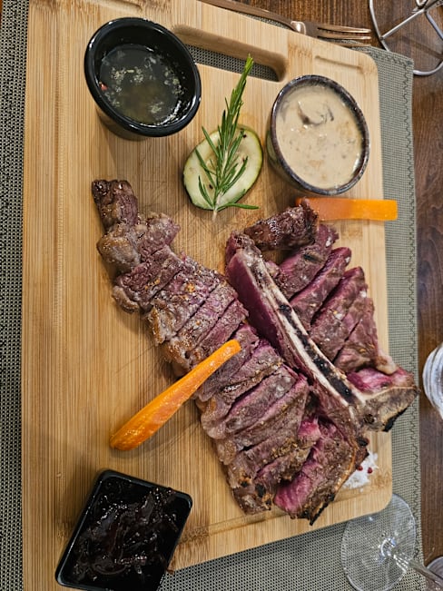 8.5/10That’s good meat! We had a fantastic evening at the Steakhouse! The meat, Tomahawk, was so good!!!! We chose the wrong potatoes, but who cares when the meat and the wine is so good.