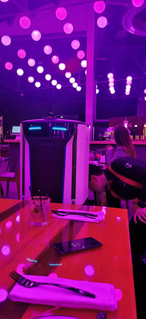 6.5/10Very nice space with great atmosphere but unfortunately the robots wasn’t working in the day we went and because of this some of the experience was lost. The food was ok, nothing special, the presentation was good but it was overpriced for the quality, the fries for example came not warm but the waitress was really nice to change it quickly. The drink was good. The service was 5 stars