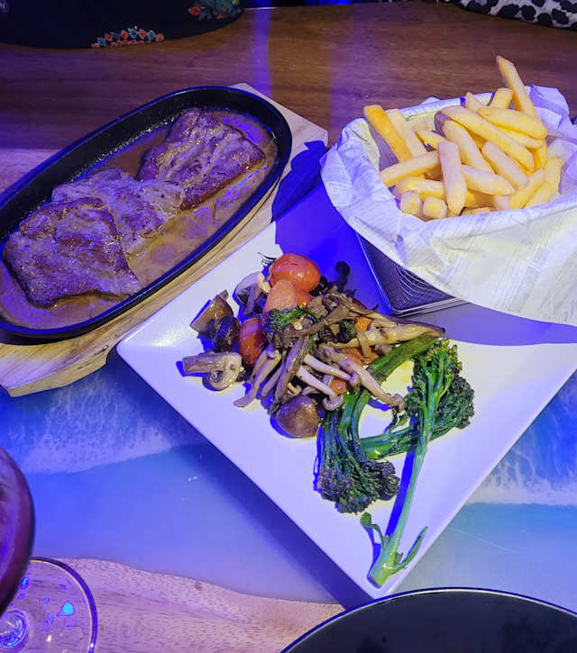 - Medalhão de filet mignon suculento, delicadamente selado e finalizado com molho aveludado de mostarda dijon e mel, acompanhado de legumes frescos da estação salteados com aromas de horta e batatas fritas.