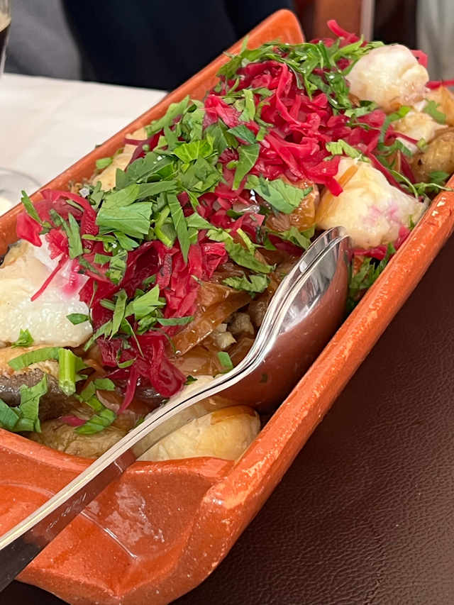 Esparregado e batata frita grelhado | molho de cogumelos | cervejeira