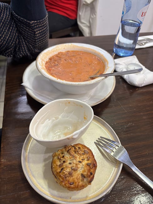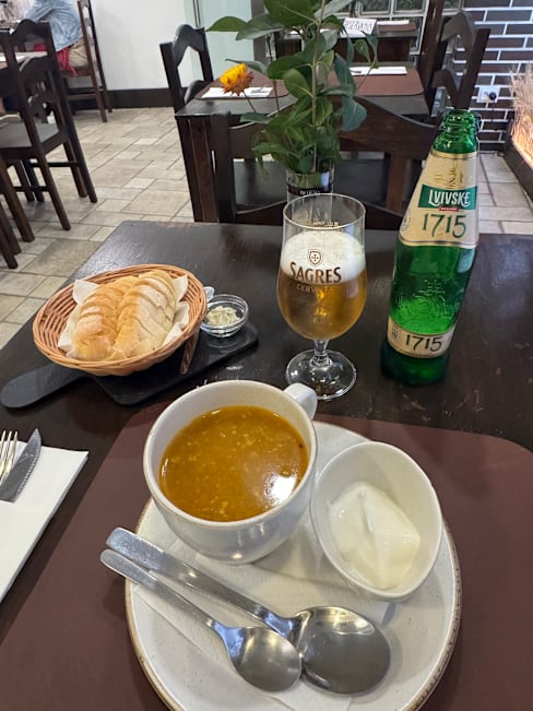 10/10Tucked away in Coimbra, this Ukrainian restaurant is a hidden gem. I visited for lunch and was amazed by the flavors and care put into every dish. The Chicken Kyiv was exceptional—crispy on the outside, with tender chicken and a filling of delicious green butter that melted beautifully. The meal began with sopa Odesa, a rich and hearty seafood soup, and ended with Varenyky with cherries, delicate dumplings filled with tart-sweet cherries and served with cream—a perfect dessert. The service was fast and attentive, with clear pride in their cuisine. This spot is an authentic taste of Ukraine in the city, and I can’t wait to return to try their famous Kyiv Cake. Highly recommended!