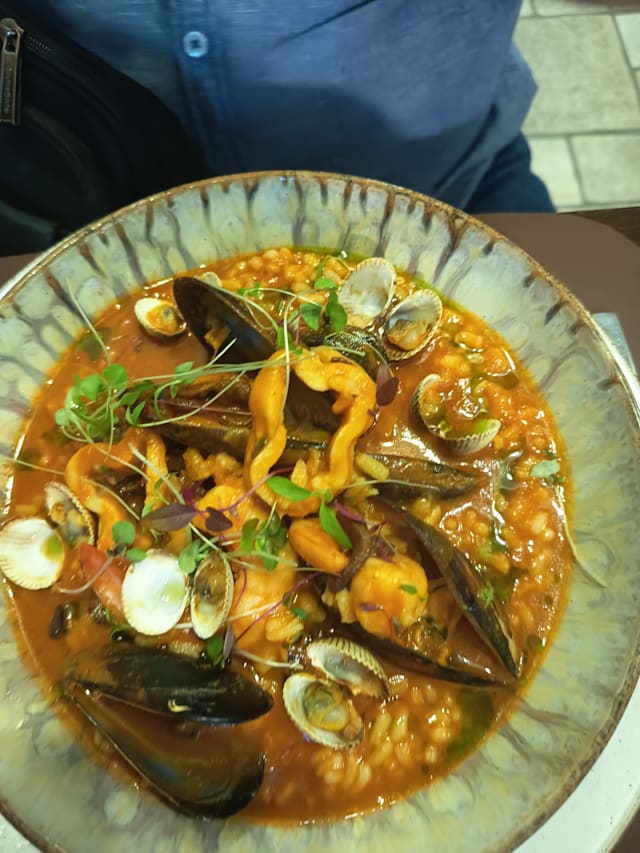 10/10I discovered this newly opened restaurant in a quiet alley in the old sector of Coimbra. The gentleman who greeted me was most helpful and gave me advice on the dishes. I chose the Seafood Odesa Soup. Together with bread, olives and cheese, it was a hearty, delicious meal. To finish was Honey Cake suggested by my host...great! I got to take home the unfinished olives and cheese afterwards. I will be returning there tomorrow!