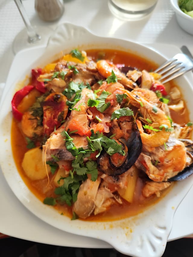 8/10Wonderful traditional Portuguese restaurant Great selection of food choices of fish, meat and chicken. Enjoyed our meals of grilled sea bass and seafood skewers!