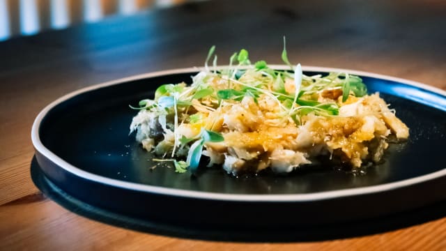 sapateira, porco, aioli de mostarda, papada corada, verdes, sapateira branca e castanha