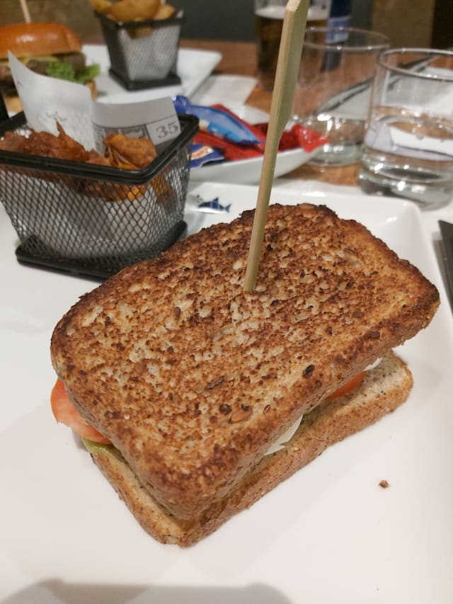 Con pollo, bacon, huevo frito, lechuga, tomate y mahonesa