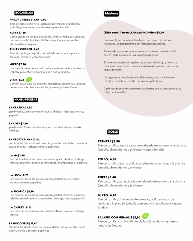 Pan brioche,carne de vacuno, queso de cabra, rúcula, tomate, albahaca