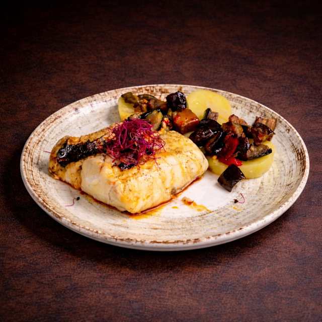 - Lomos de bacalao con cebolla caramelizada y miel de caña