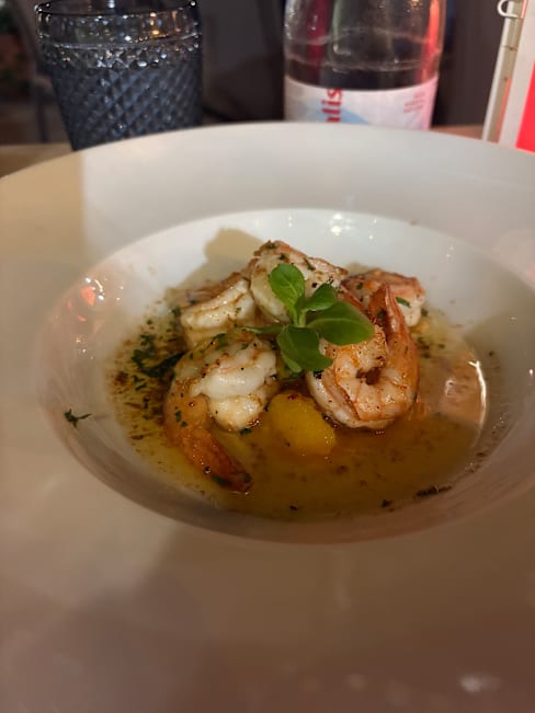 10/10The restaurant has a lovely atmosphere. Lots of tables outside, where a band were playing all evening. Beautiful, soothing music to listen to while eating a delicious meal. Our prawn starter could have been eaten twice, it was that good. While my salmon mains, on asparagus risotto was to die for. A birthday meal to remember. We will be back xx