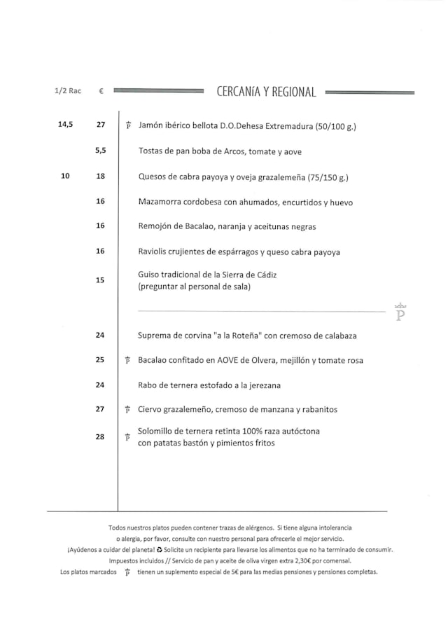 2.5/10Service was sub-par. We choose not to order from the fix choice menu. We ordered just a few items from the menu but we were charged the full menu price. The waiter did not guide us through the fix choice menu and so we had no idea we'd still be charged even though we had significantly fewer selections. Part of the reason we choose to order a la carte was that the menu was limited. The food when delivered was not fresh--the seafood pasta had canned shrimp, the veal steak was almost all fat, the potatoes were soggy and the for the ensalada mista, we were charged 24 euros. We were terribly disappointed. This was by far the worst meal during our two week travels in Spain. The management was unapologetic. Needless to say, we did not dine there again during our several day stay in Arcos de la Frontera.